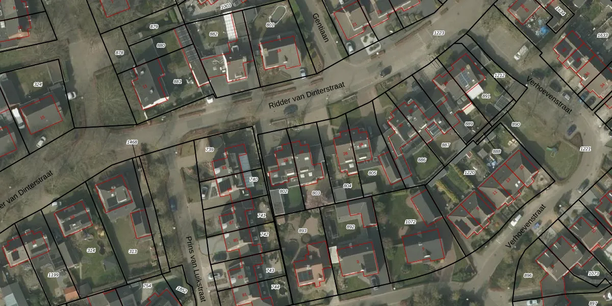 Ridder van Dinterstraat 24 is gelegen op kadastraal perceel LGT00F803. Deze kadastrale aanduiding is uniek en wordt gebruikt door het Kadaster om eigendomsrechten en andere zakelijke rechten vast te leggen. Het perceel maakt onderdeel uit van de kadastrale gemeente Luyksgestel.