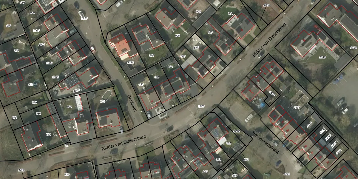 Gebruik de zoekbalk of klik op een perceel voor informatie over de adressen binnen dit perceel.