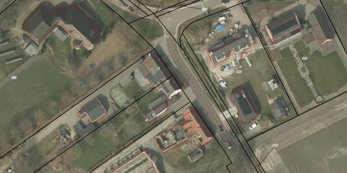 Het perceel waarop Rijt 49 staat heeft een oppervlakte van 5165 m². Dit is een zeer groot perceel. De perceeloppervlakte wordt geregistreerd door het Kadaster. Gedetailleerde informatie over de maten van dit perceel kunt u vinden in het rapport Kadastrale kaart met maatvoering van Rijt 49.