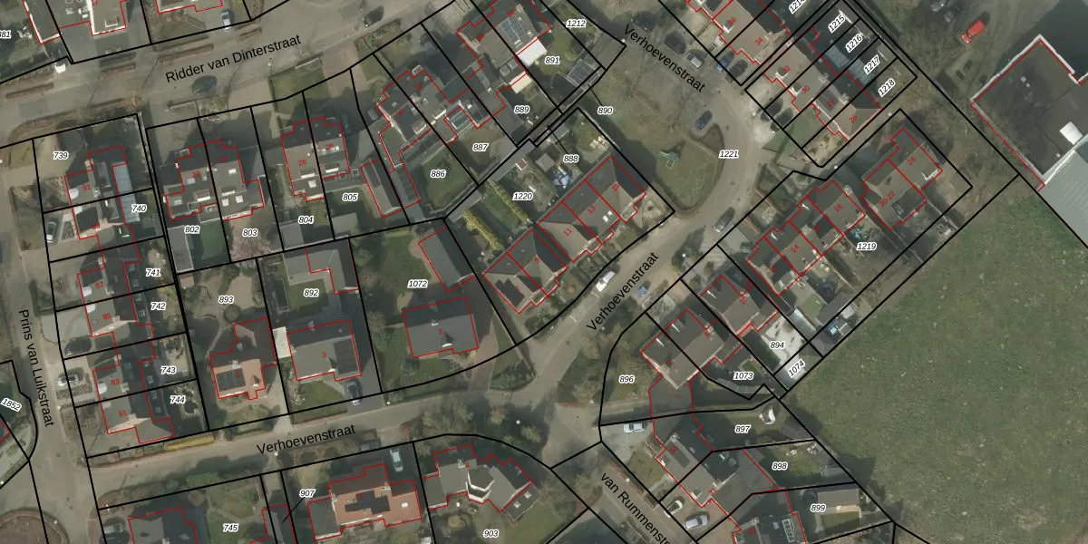 Verhoevenstraat 9 is gelegen op kadastraal perceel LGT00F1220. Deze kadastrale aanduiding is uniek en wordt gebruikt door het Kadaster om eigendomsrechten en andere zakelijke rechten vast te leggen. Het perceel maakt onderdeel uit van de kadastrale gemeente Luyksgestel.