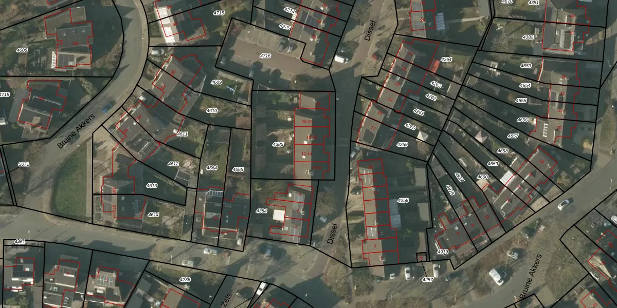 Het perceel waarop Dissel 12 staat heeft een oppervlakte van 787 m². Dit is een groot perceel. De perceeloppervlakte wordt geregistreerd door het Kadaster. Gedetailleerde informatie over de maten van dit perceel kunt u vinden in het rapport Kadastrale kaart met maatvoering van Dissel 12.