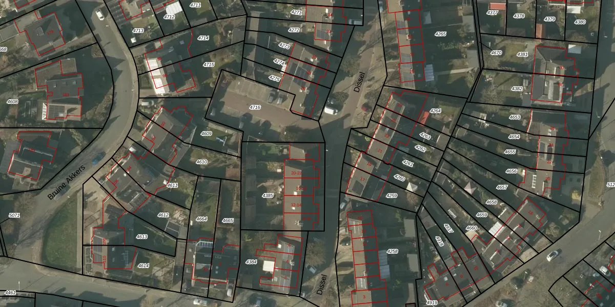 Het perceel waarop Dissel 24 staat heeft een oppervlakte van 787 m². Dit is een groot perceel. De perceeloppervlakte wordt geregistreerd door het Kadaster. Gedetailleerde informatie over de maten van dit perceel kunt u vinden in het rapport Kadastrale kaart met maatvoering van Dissel 24.
