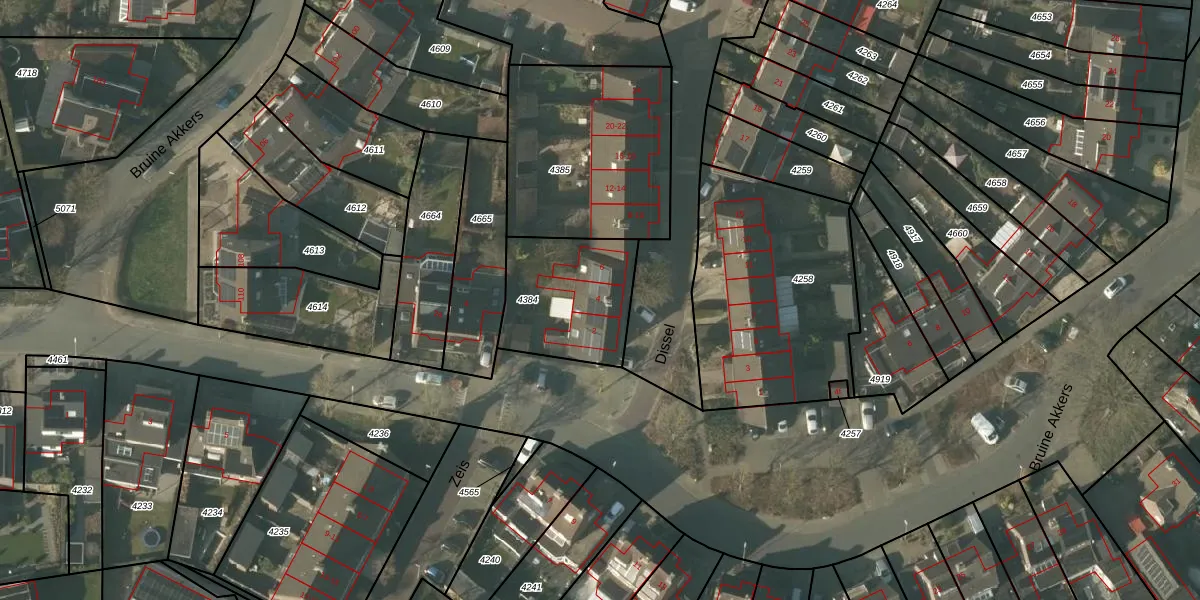 Het perceel waarop Dissel 4 staat heeft een oppervlakte van 423 m². Dit is een groot perceel. De perceeloppervlakte wordt geregistreerd door het Kadaster. Gedetailleerde informatie over de maten van dit perceel kunt u vinden in het rapport Kadastrale kaart met maatvoering van Dissel 4.