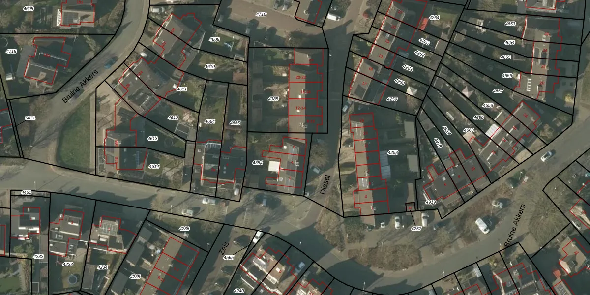 Het perceel waarop Dissel 6 staat heeft een oppervlakte van 423 m². Dit is een groot perceel. De perceeloppervlakte wordt geregistreerd door het Kadaster. Gedetailleerde informatie over de maten van dit perceel kunt u vinden in het rapport Kadastrale kaart met maatvoering van Dissel 6.