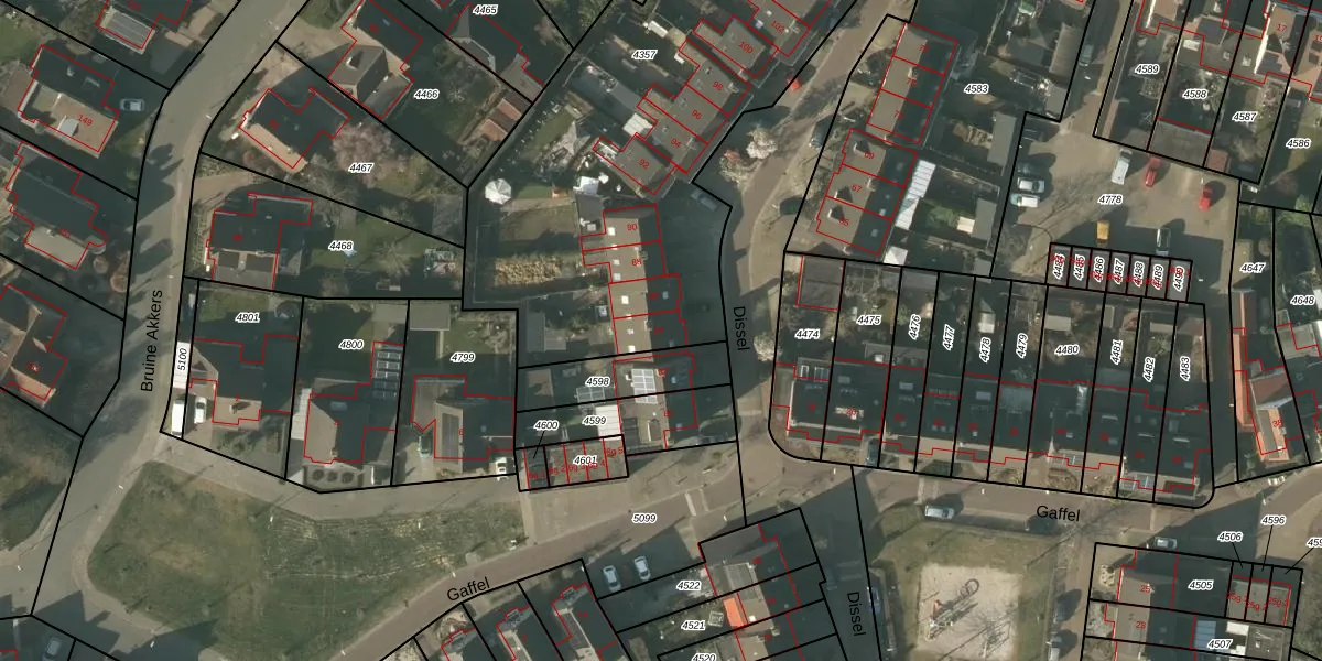 Het perceel waarop Dissel 84 staat heeft een oppervlakte van 2840 m². Dit is een zeer groot perceel. De perceeloppervlakte wordt geregistreerd door het Kadaster. Gedetailleerde informatie over de maten van dit perceel kunt u vinden in het rapport Kadastrale kaart met maatvoering van Dissel 84.