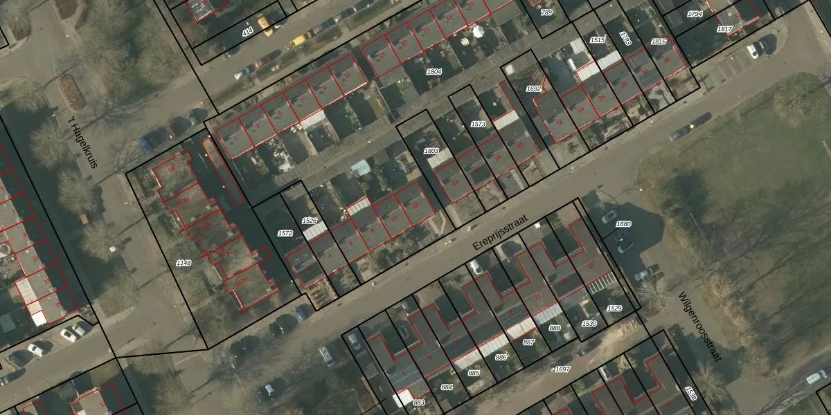 Het perceel waarop Ereprijsstraat 12 staat heeft een oppervlakte van 3430 m². Dit is een zeer groot perceel. De perceeloppervlakte wordt geregistreerd door het Kadaster. Gedetailleerde informatie over de maten van dit perceel kunt u vinden in het rapport Kadastrale kaart met maatvoering van Ereprijsstraat 12.