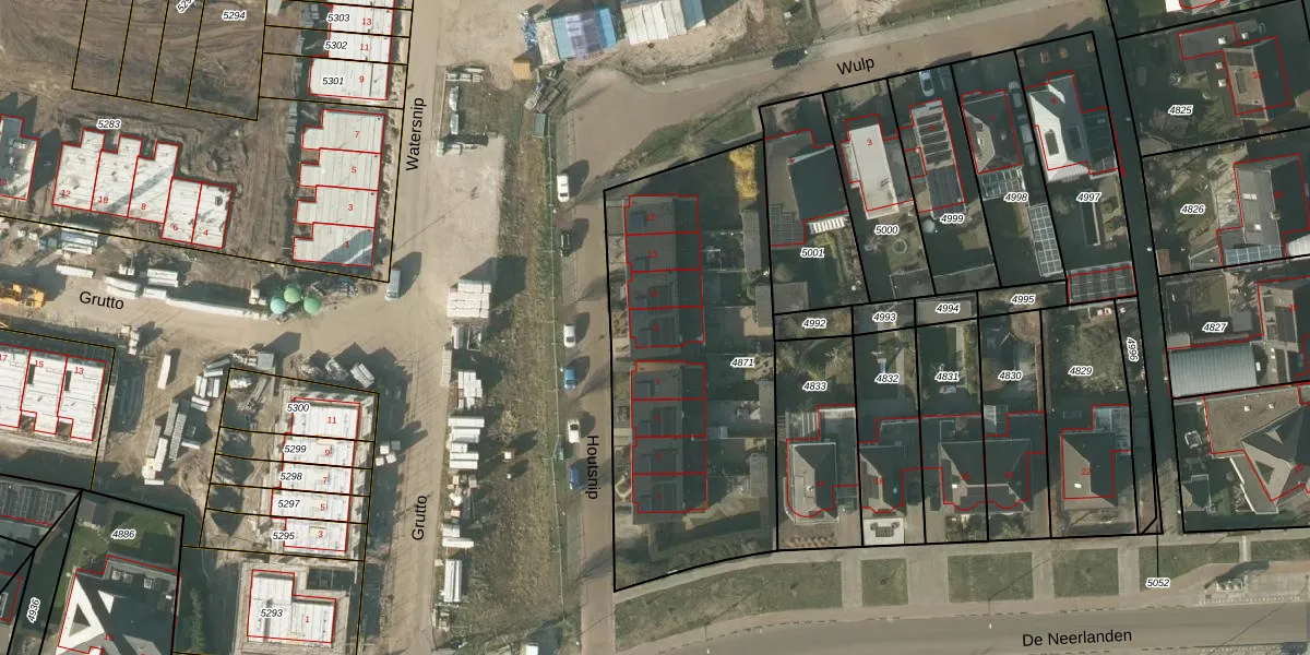 Het perceel waarop Houtsnip 9 staat heeft een oppervlakte van 1537 m². Dit is een zeer groot perceel. De perceeloppervlakte wordt geregistreerd door het Kadaster. Gedetailleerde informatie over de maten van dit perceel kunt u vinden in het rapport Kadastrale kaart met maatvoering van Houtsnip 9.