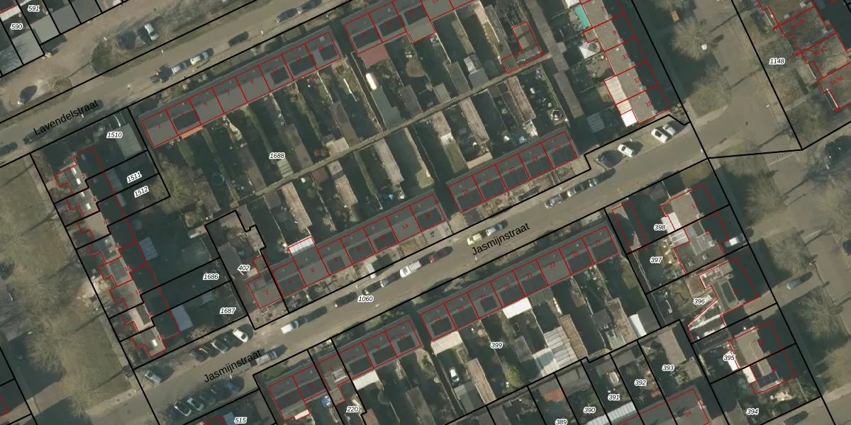 Het perceel waarop Jasmijnstraat 16 staat heeft een oppervlakte van 7115 m². Dit is een zeer groot perceel. De perceeloppervlakte wordt geregistreerd door het Kadaster. Gedetailleerde informatie over de maten van dit perceel kunt u vinden in het rapport Kadastrale kaart met maatvoering van Jasmijnstraat 16.