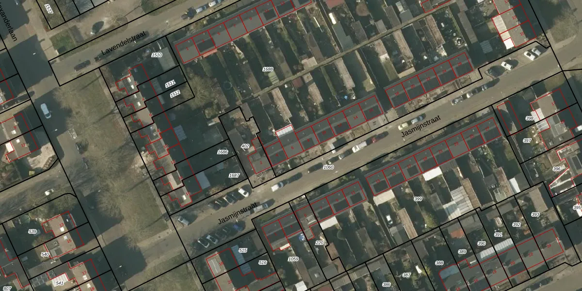 Het perceel waarop Jasmijnstraat 6 staat heeft een oppervlakte van 7115 m². Dit is een zeer groot perceel. De perceeloppervlakte wordt geregistreerd door het Kadaster. Gedetailleerde informatie over de maten van dit perceel kunt u vinden in het rapport Kadastrale kaart met maatvoering van Jasmijnstraat 6.