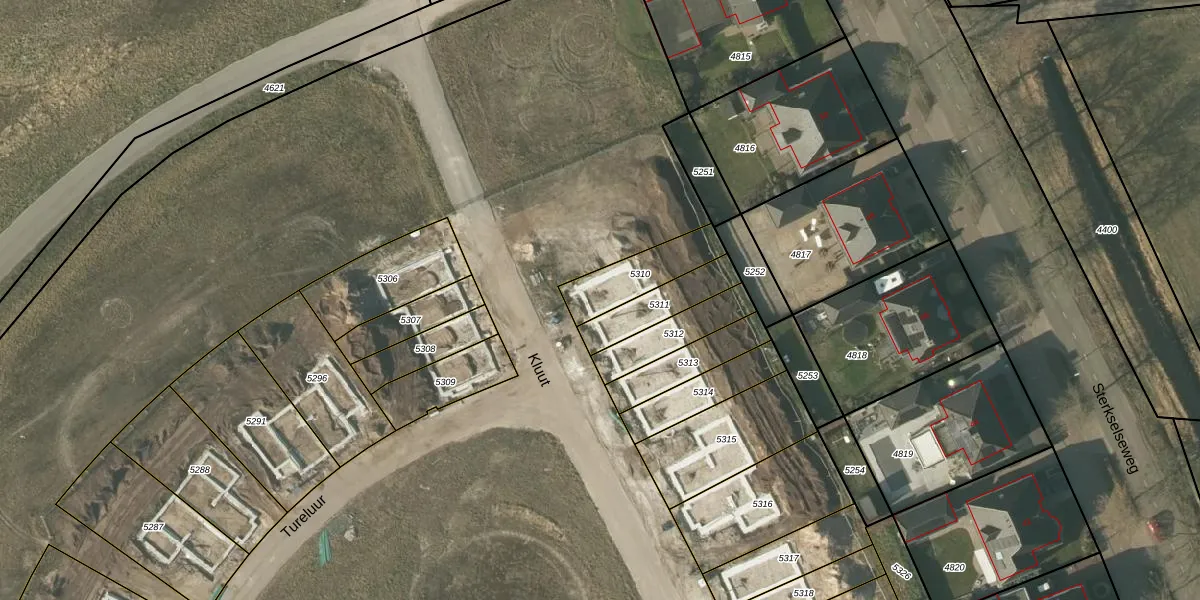 Het perceel waarop Kluut 32 staat heeft een oppervlakte van 182 m². Dit is een middelgroot perceel. De perceeloppervlakte wordt geregistreerd door het Kadaster. Gedetailleerde informatie over de maten van dit perceel kunt u vinden in het rapport Kadastrale kaart met maatvoering van Kluut 32.