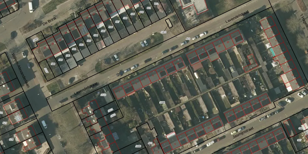 Het perceel waarop Lavendelstraat 9 staat heeft een oppervlakte van 7115 m². Dit is een zeer groot perceel. De perceeloppervlakte wordt geregistreerd door het Kadaster. Gedetailleerde informatie over de maten van dit perceel kunt u vinden in het rapport Kadastrale kaart met maatvoering van Lavendelstraat 9.