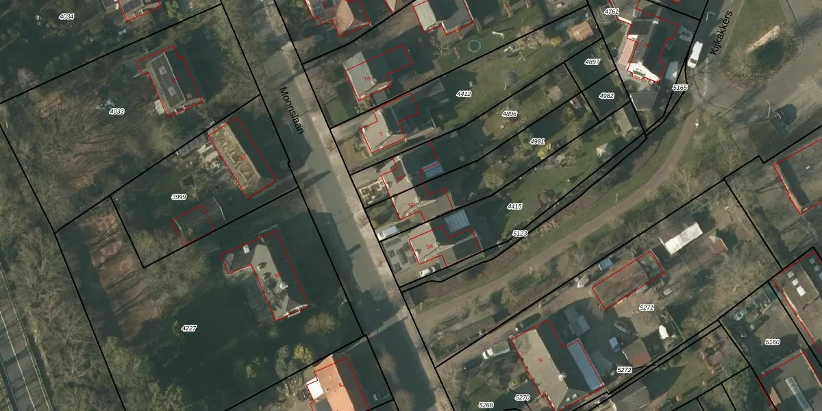 Moonslaan 5-b is gelegen op kadastraal perceel MHZ00A4981. Deze kadastrale aanduiding is uniek en wordt gebruikt door het Kadaster om eigendomsrechten en andere zakelijke rechten vast te leggen. Het perceel maakt onderdeel uit van de kadastrale gemeente Maarheeze.