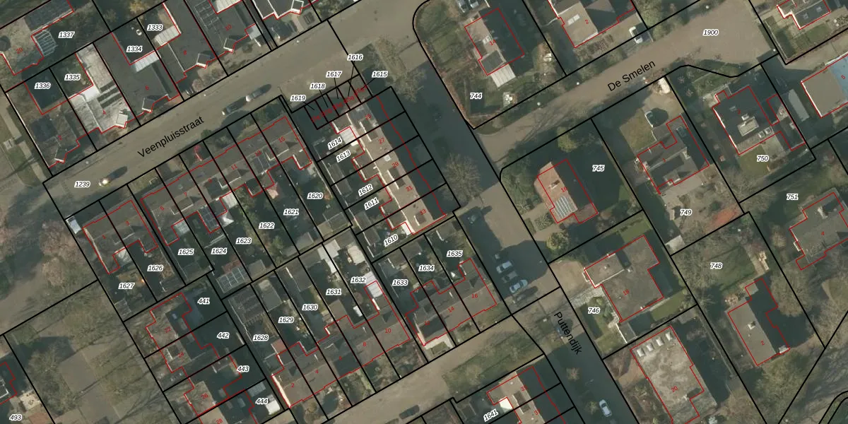 Gebruik de zoekbalk of klik op een perceel voor informatie over de adressen binnen dit perceel.