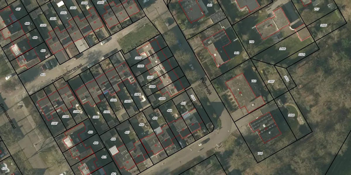 Het perceel waarop Puttendijk 55 staat heeft een oppervlakte van 191 m². Dit is een middelgroot perceel. De perceeloppervlakte wordt geregistreerd door het Kadaster. Gedetailleerde informatie over de maten van dit perceel kunt u vinden in het rapport Kadastrale kaart met maatvoering van Puttendijk 55.