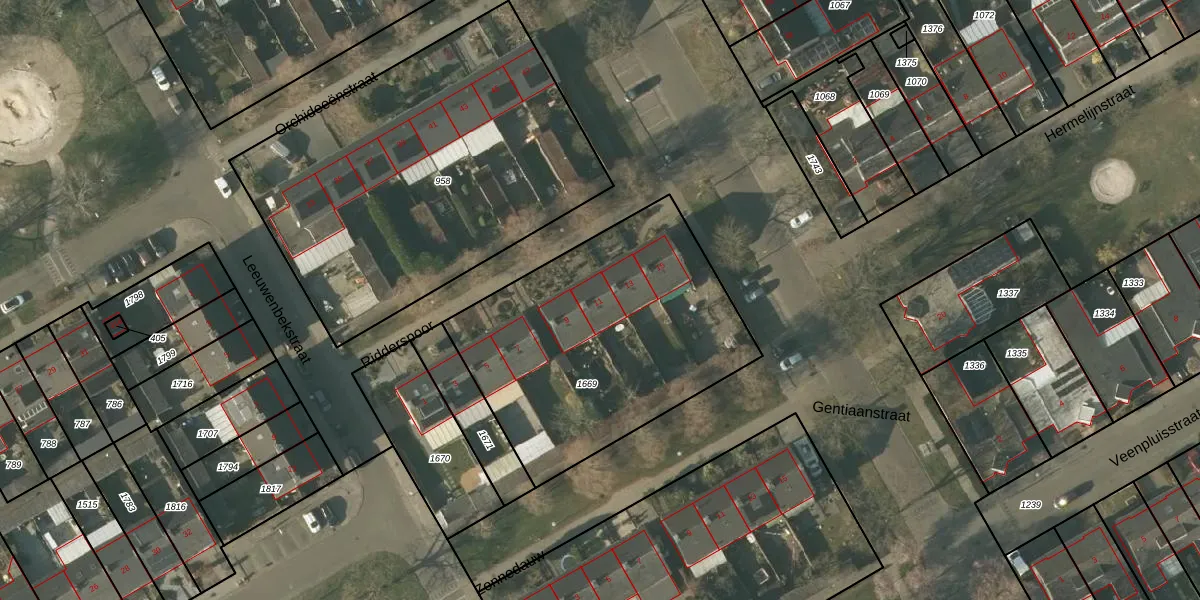 Het perceel waarop Ridderspoor 11 staat heeft een oppervlakte van 1365 m². Dit is een zeer groot perceel. De perceeloppervlakte wordt geregistreerd door het Kadaster. Gedetailleerde informatie over de maten van dit perceel kunt u vinden in het rapport Kadastrale kaart met maatvoering van Ridderspoor 11.
