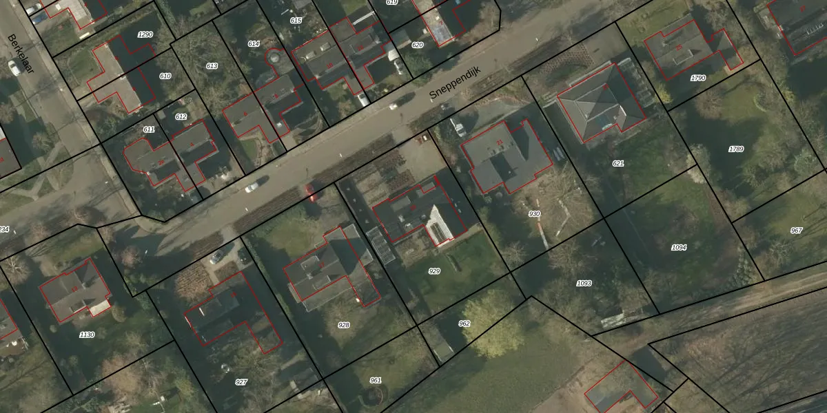 Het perceel waarop Sneppendijk 19 staat heeft een oppervlakte van 1047 m². Dit is een zeer groot perceel. De perceeloppervlakte wordt geregistreerd door het Kadaster. Gedetailleerde informatie over de maten van dit perceel kunt u vinden in het rapport Kadastrale kaart met maatvoering van Sneppendijk 19.