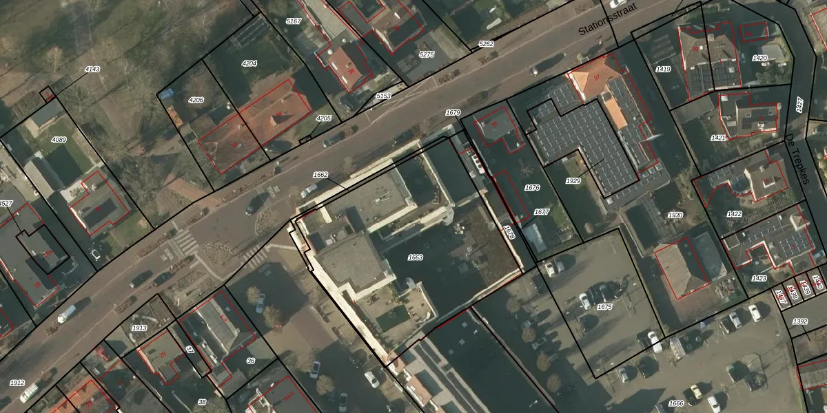 Het perceel waarop Stationsstraat 33-f staat heeft een oppervlakte van 1664 m². Dit is een zeer groot perceel. De perceeloppervlakte wordt geregistreerd door het Kadaster. Gedetailleerde informatie over de maten van dit perceel kunt u vinden in het rapport Kadastrale kaart met maatvoering van Stationsstraat 33-f.