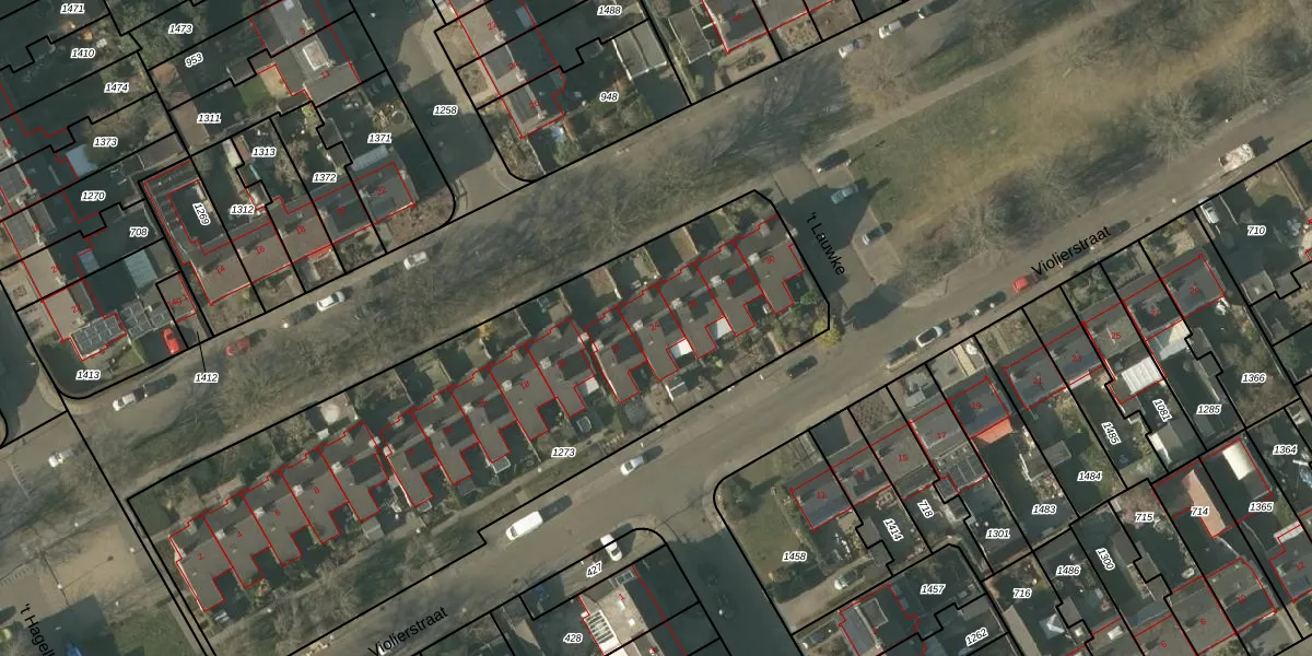 Het perceel waarop Violierstraat 24 staat heeft een oppervlakte van 3059 m². Dit is een zeer groot perceel. De perceeloppervlakte wordt geregistreerd door het Kadaster. Gedetailleerde informatie over de maten van dit perceel kunt u vinden in het rapport Kadastrale kaart met maatvoering van Violierstraat 24.