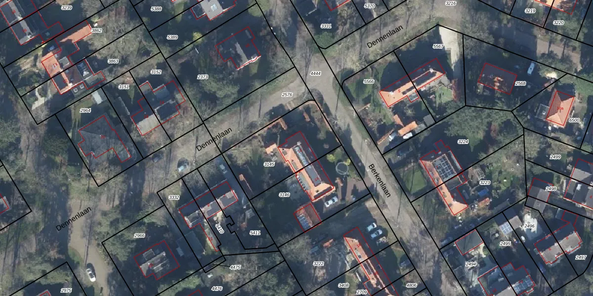 Gebruik de zoekbalk of klik op een perceel voor informatie over de adressen binnen dit perceel.