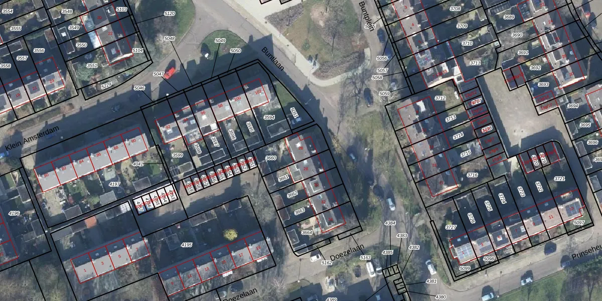 Gebruik de zoekbalk of klik op een perceel voor informatie over de adressen binnen dit perceel.
