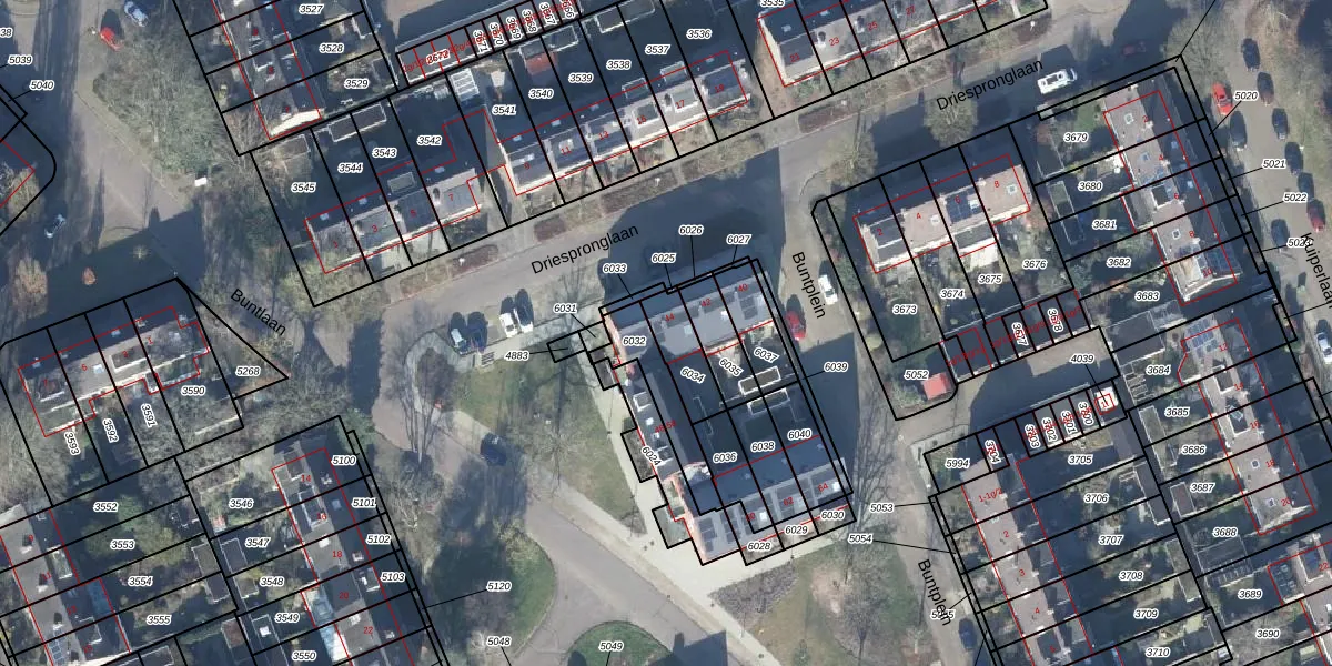 Gebruik de zoekbalk of klik op een perceel voor informatie over de adressen binnen dit perceel.