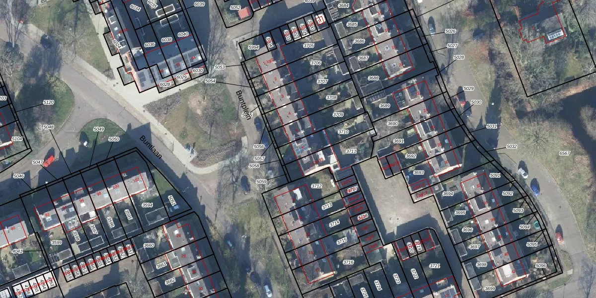 Buntplein 6 is gelegen op kadastraal perceel MAA00A3710. Deze kadastrale aanduiding is uniek en wordt gebruikt door het Kadaster om eigendomsrechten en andere zakelijke rechten vast te leggen. Het perceel maakt onderdeel uit van de kadastrale gemeente Maarn.