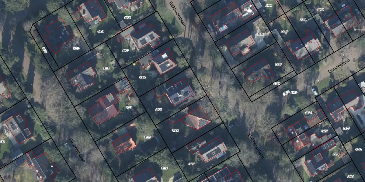 Eekhoornlaan 5 is gelegen op kadastraal perceel MAA00A3005. Deze kadastrale aanduiding is uniek en wordt gebruikt door het Kadaster om eigendomsrechten en andere zakelijke rechten vast te leggen. Het perceel maakt onderdeel uit van de kadastrale gemeente Maarn.