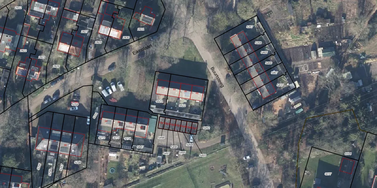 Het perceel waarop Eikenlaan 46 staat heeft een oppervlakte van 439 m². Dit is een groot perceel. De perceeloppervlakte wordt geregistreerd door het Kadaster. Gedetailleerde informatie over de maten van dit perceel kunt u vinden in het rapport Kadastrale kaart met maatvoering van Eikenlaan 46.