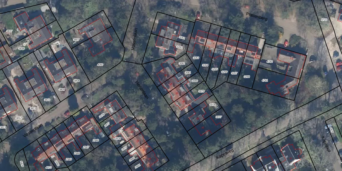 Hertenlaan 34 is gelegen op kadastraal perceel MAA00A3081. Deze kadastrale aanduiding is uniek en wordt gebruikt door het Kadaster om eigendomsrechten en andere zakelijke rechten vast te leggen. Het perceel maakt onderdeel uit van de kadastrale gemeente Maarn.