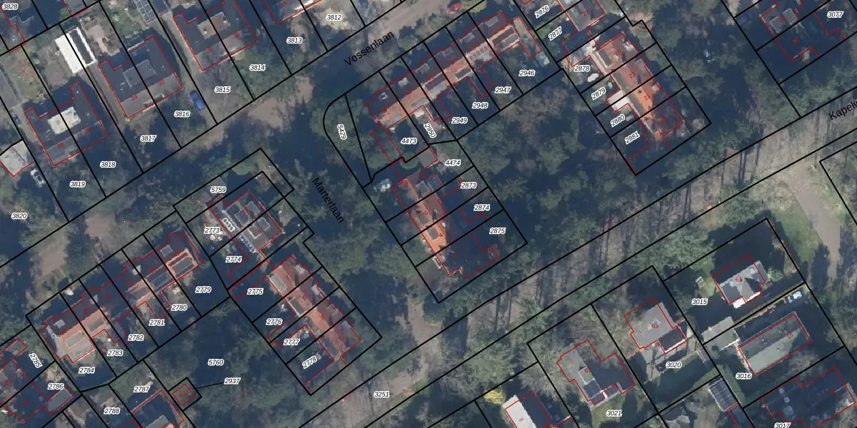 Marterlaan 6 is gelegen op kadastraal perceel MAA00A2873. Deze kadastrale aanduiding is uniek en wordt gebruikt door het Kadaster om eigendomsrechten en andere zakelijke rechten vast te leggen. Het perceel maakt onderdeel uit van de kadastrale gemeente Maarn.