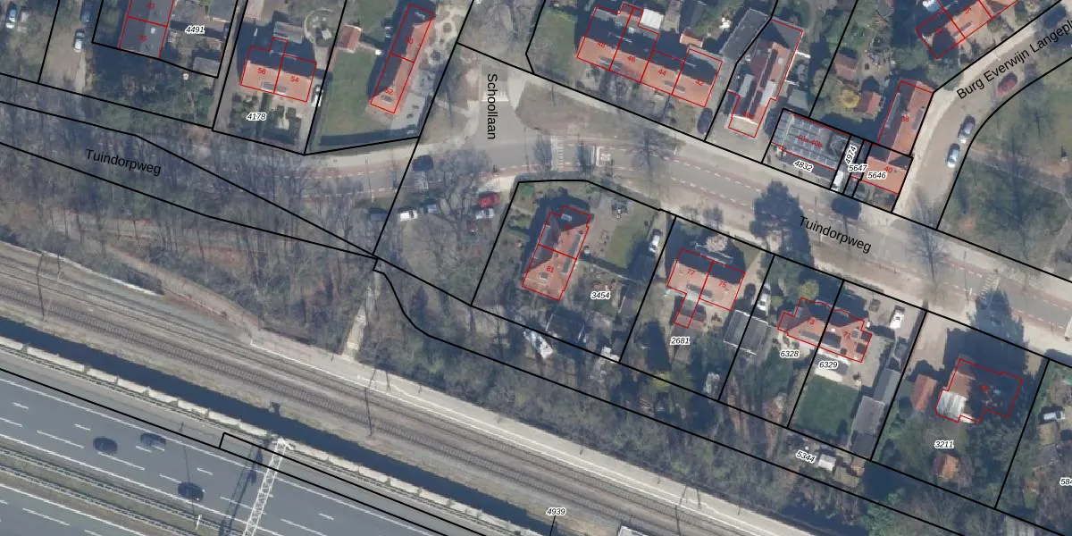 Tuindorpweg 81 is gelegen op kadastraal perceel MAA00A3454. Deze kadastrale aanduiding is uniek en wordt gebruikt door het Kadaster om eigendomsrechten en andere zakelijke rechten vast te leggen. Het perceel maakt onderdeel uit van de kadastrale gemeente Maarn.