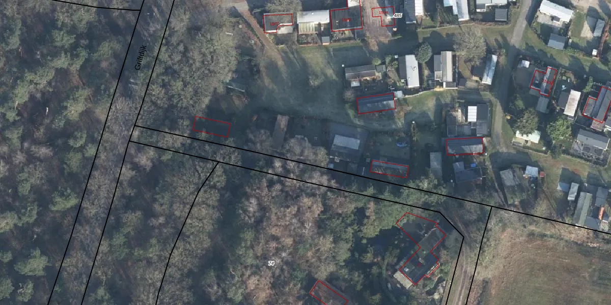Het perceel waarop Griftdijk 15-r-12 staat heeft een oppervlakte van 2,2 ha. Dit is een zeer groot perceel. De perceeloppervlakte wordt geregistreerd door het Kadaster. Gedetailleerde informatie over de maten van dit perceel kunt u vinden in het rapport Kadastrale kaart met maatvoering van Griftdijk 15-r-12.