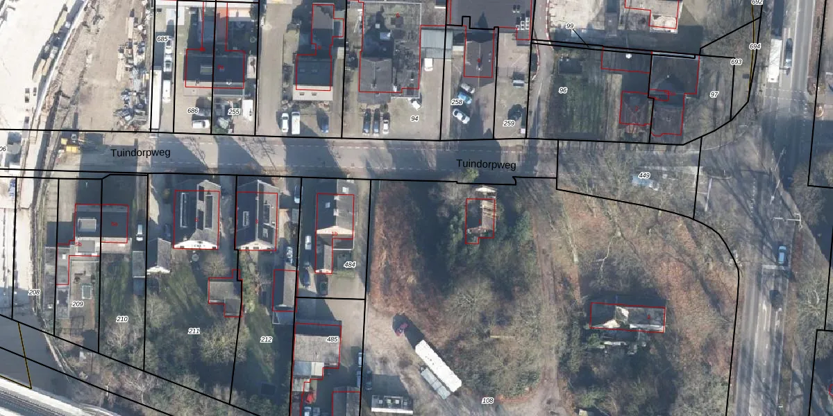 Het perceel waarop Tuindorpweg 1-k-25 staat heeft een oppervlakte van 6860 m². Dit is een zeer groot perceel. De perceeloppervlakte wordt geregistreerd door het Kadaster. Gedetailleerde informatie over de maten van dit perceel kunt u vinden in het rapport Kadastrale kaart met maatvoering van Tuindorpweg 1-k-25.