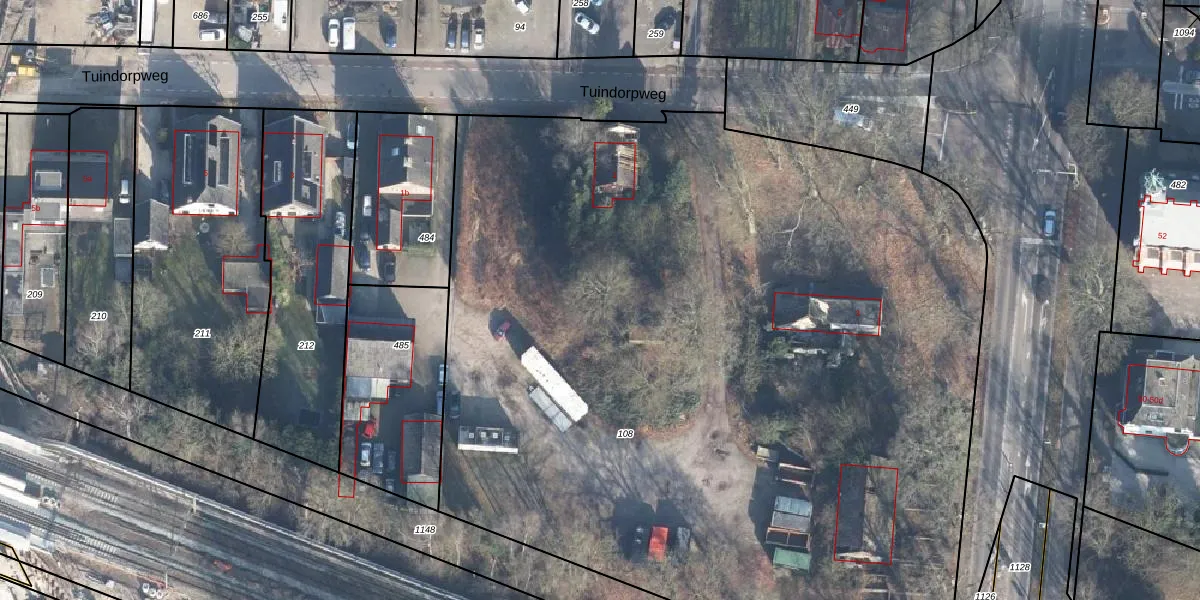 Het perceel waarop Tuindorpweg 1-k-55 staat heeft een oppervlakte van 6860 m². Dit is een zeer groot perceel. De perceeloppervlakte wordt geregistreerd door het Kadaster. Gedetailleerde informatie over de maten van dit perceel kunt u vinden in het rapport Kadastrale kaart met maatvoering van Tuindorpweg 1-k-55.