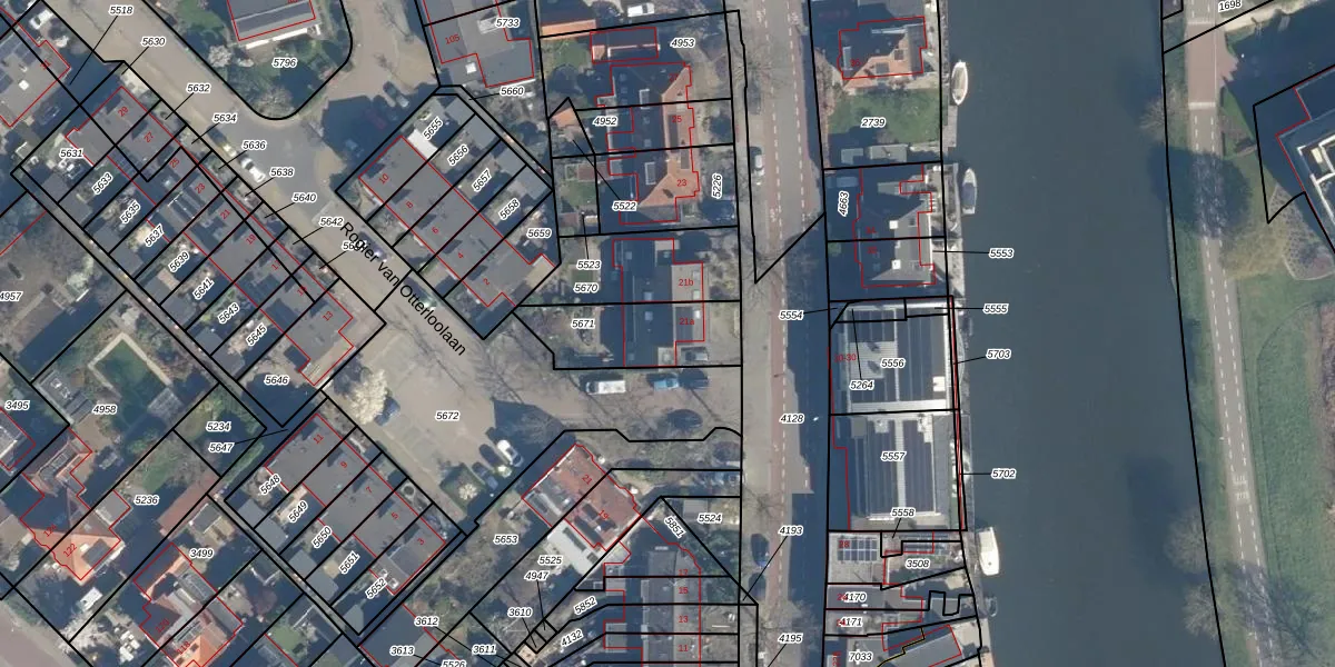 Gebruik de zoekbalk of klik op een perceel voor informatie over de adressen binnen dit perceel.