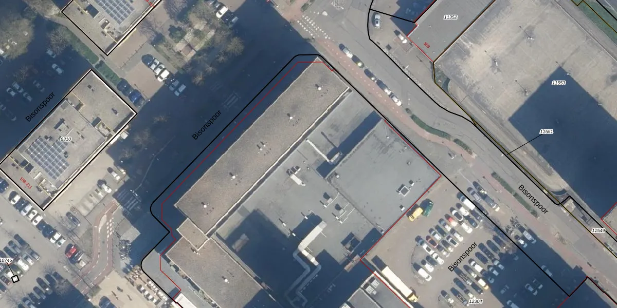 Het perceel waarop Bisonspoor 2114 staat heeft een oppervlakte van 2,9 ha. Dit is een zeer groot perceel. De perceeloppervlakte wordt geregistreerd door het Kadaster. Gedetailleerde informatie over de maten van dit perceel kunt u vinden in het rapport Kadastrale kaart met maatvoering van Bisonspoor 2114.