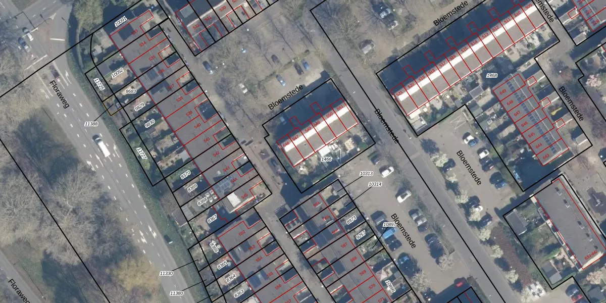 Het perceel waarop Bloemstede 547 staat heeft een oppervlakte van 734 m². Dit is een groot perceel. De perceeloppervlakte wordt geregistreerd door het Kadaster. Gedetailleerde informatie over de maten van dit perceel kunt u vinden in het rapport Kadastrale kaart met maatvoering van Bloemstede 547.