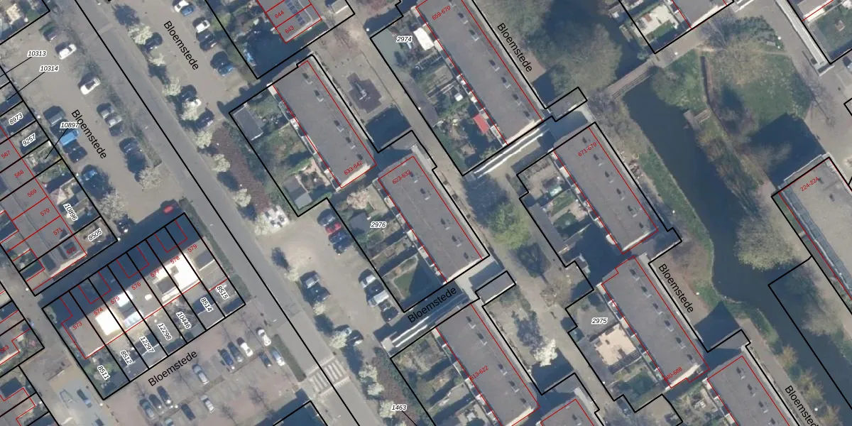 Het perceel waarop Bloemstede 628 staat heeft een oppervlakte van 1537 m². Dit is een zeer groot perceel. De perceeloppervlakte wordt geregistreerd door het Kadaster. Gedetailleerde informatie over de maten van dit perceel kunt u vinden in het rapport Kadastrale kaart met maatvoering van Bloemstede 628.