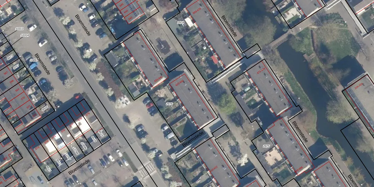 Bloemstede 629 is gelegen op kadastraal perceel MSN02B2976. Deze kadastrale aanduiding is uniek en wordt gebruikt door het Kadaster om eigendomsrechten en andere zakelijke rechten vast te leggen. Het perceel maakt onderdeel uit van de kadastrale gemeente Maarssen.