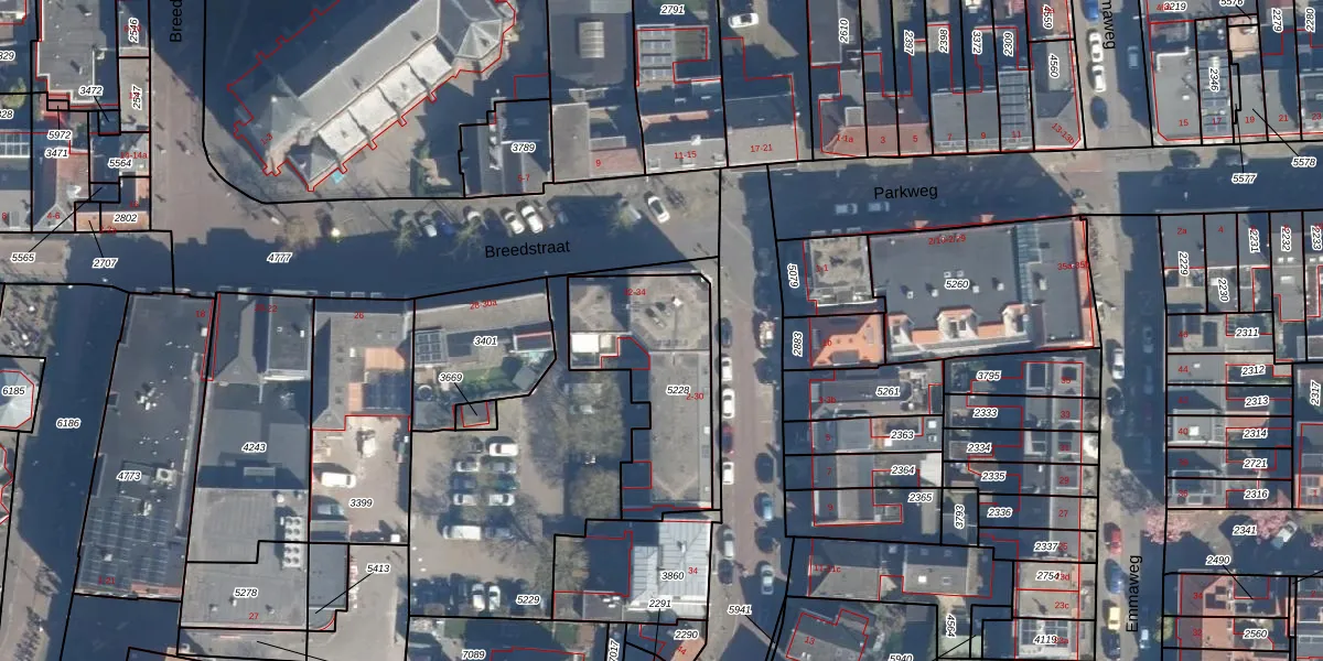 Het perceel waarop Breedstraat 34 staat heeft een oppervlakte van 585 m². Dit is een groot perceel. De perceeloppervlakte wordt geregistreerd door het Kadaster. Gedetailleerde informatie over de maten van dit perceel kunt u vinden in het rapport Kadastrale kaart met maatvoering van Breedstraat 34.