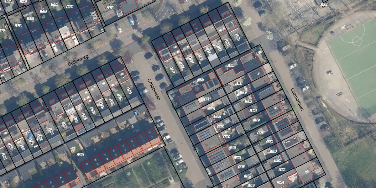 Gebruik de zoekbalk of klik op een perceel voor informatie over de adressen binnen dit perceel.