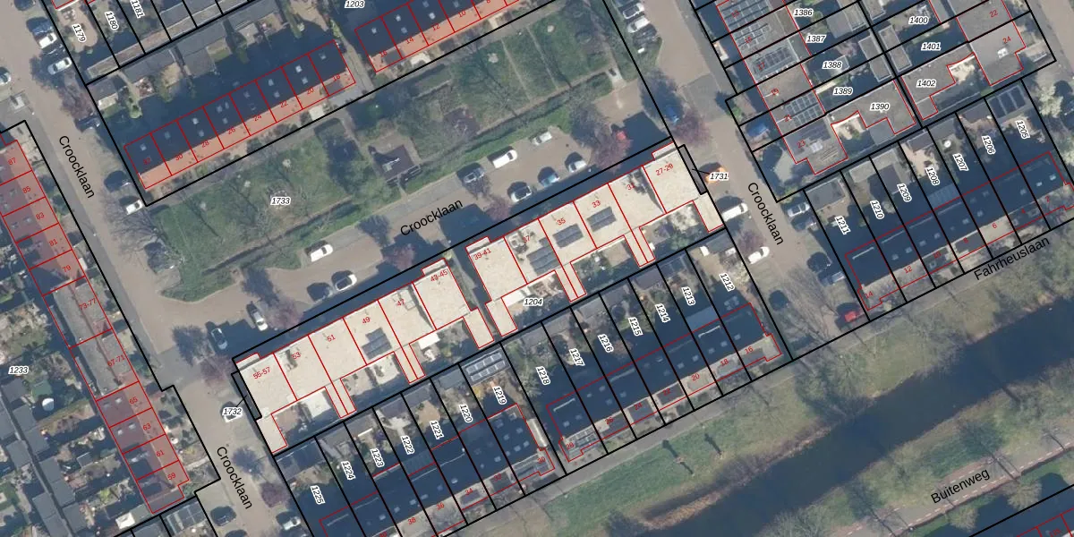 Het perceel waarop Croocklaan 37 staat heeft een oppervlakte van 1835 m². Dit is een zeer groot perceel. De perceeloppervlakte wordt geregistreerd door het Kadaster. Gedetailleerde informatie over de maten van dit perceel kunt u vinden in het rapport Kadastrale kaart met maatvoering van Croocklaan 37.