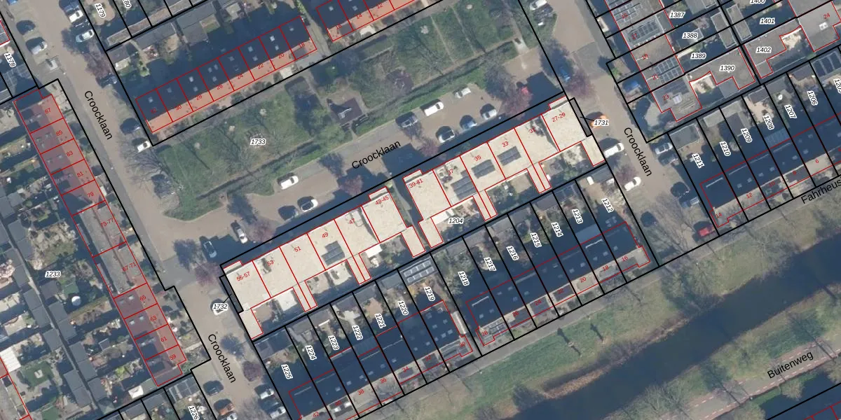 Het perceel waarop Croocklaan 41 staat heeft een oppervlakte van 1835 m². Dit is een zeer groot perceel. De perceeloppervlakte wordt geregistreerd door het Kadaster. Gedetailleerde informatie over de maten van dit perceel kunt u vinden in het rapport Kadastrale kaart met maatvoering van Croocklaan 41.