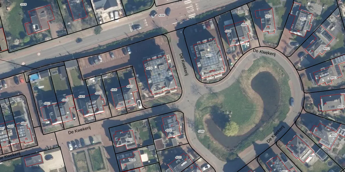 Het perceel waarop De Kwekerij 9 staat heeft een oppervlakte van 1295 m². Dit is een zeer groot perceel. De perceeloppervlakte wordt geregistreerd door het Kadaster. Gedetailleerde informatie over de maten van dit perceel kunt u vinden in het rapport Kadastrale kaart met maatvoering van De Kwekerij 9.
