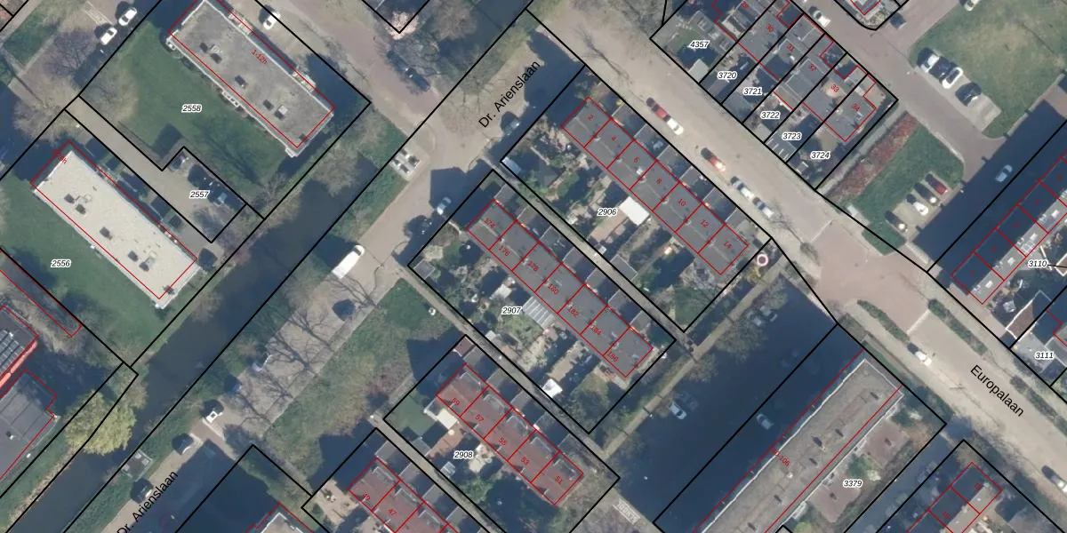 Het perceel waarop Dr. Arienslaan 178 staat heeft een oppervlakte van 1109 m². Dit is een zeer groot perceel. De perceeloppervlakte wordt geregistreerd door het Kadaster. Gedetailleerde informatie over de maten van dit perceel kunt u vinden in het rapport Kadastrale kaart met maatvoering van Dr. Arienslaan 178.