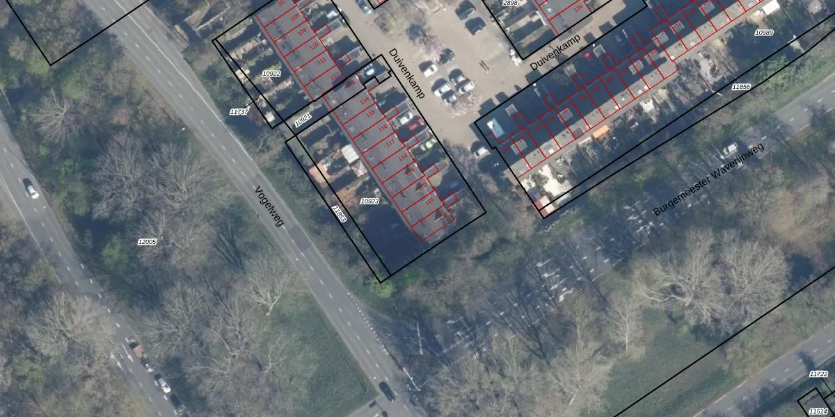Het perceel waarop Duivenkamp 121 staat heeft een oppervlakte van 1135 m². Dit is een zeer groot perceel. De perceeloppervlakte wordt geregistreerd door het Kadaster. Gedetailleerde informatie over de maten van dit perceel kunt u vinden in het rapport Kadastrale kaart met maatvoering van Duivenkamp 121.