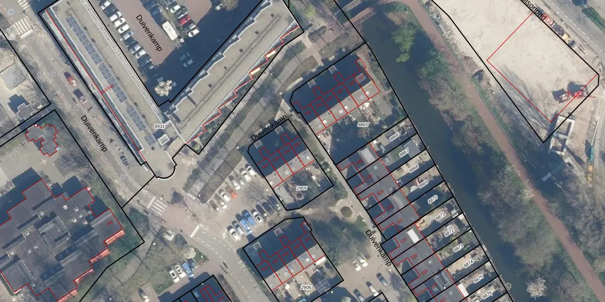 Het perceel waarop Duivenkamp 533 staat heeft een oppervlakte van 456 m². Dit is een groot perceel. De perceeloppervlakte wordt geregistreerd door het Kadaster. Gedetailleerde informatie over de maten van dit perceel kunt u vinden in het rapport Kadastrale kaart met maatvoering van Duivenkamp 533.