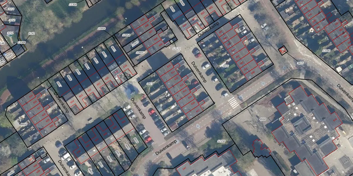 Het perceel waarop Duivenkamp 613 staat heeft een oppervlakte van 990 m². Dit is een groot perceel. De perceeloppervlakte wordt geregistreerd door het Kadaster. Gedetailleerde informatie over de maten van dit perceel kunt u vinden in het rapport Kadastrale kaart met maatvoering van Duivenkamp 613.