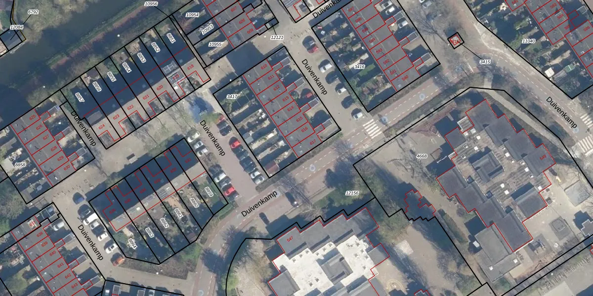 Het perceel waarop Duivenkamp 617 staat heeft een oppervlakte van 990 m². Dit is een groot perceel. De perceeloppervlakte wordt geregistreerd door het Kadaster. Gedetailleerde informatie over de maten van dit perceel kunt u vinden in het rapport Kadastrale kaart met maatvoering van Duivenkamp 617.