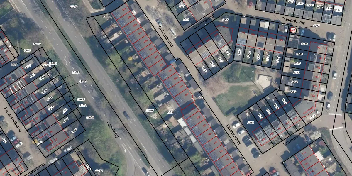 Het perceel waarop Duivenkamp 694 staat heeft een oppervlakte van 3165 m². Dit is een zeer groot perceel. De perceeloppervlakte wordt geregistreerd door het Kadaster. Gedetailleerde informatie over de maten van dit perceel kunt u vinden in het rapport Kadastrale kaart met maatvoering van Duivenkamp 694.